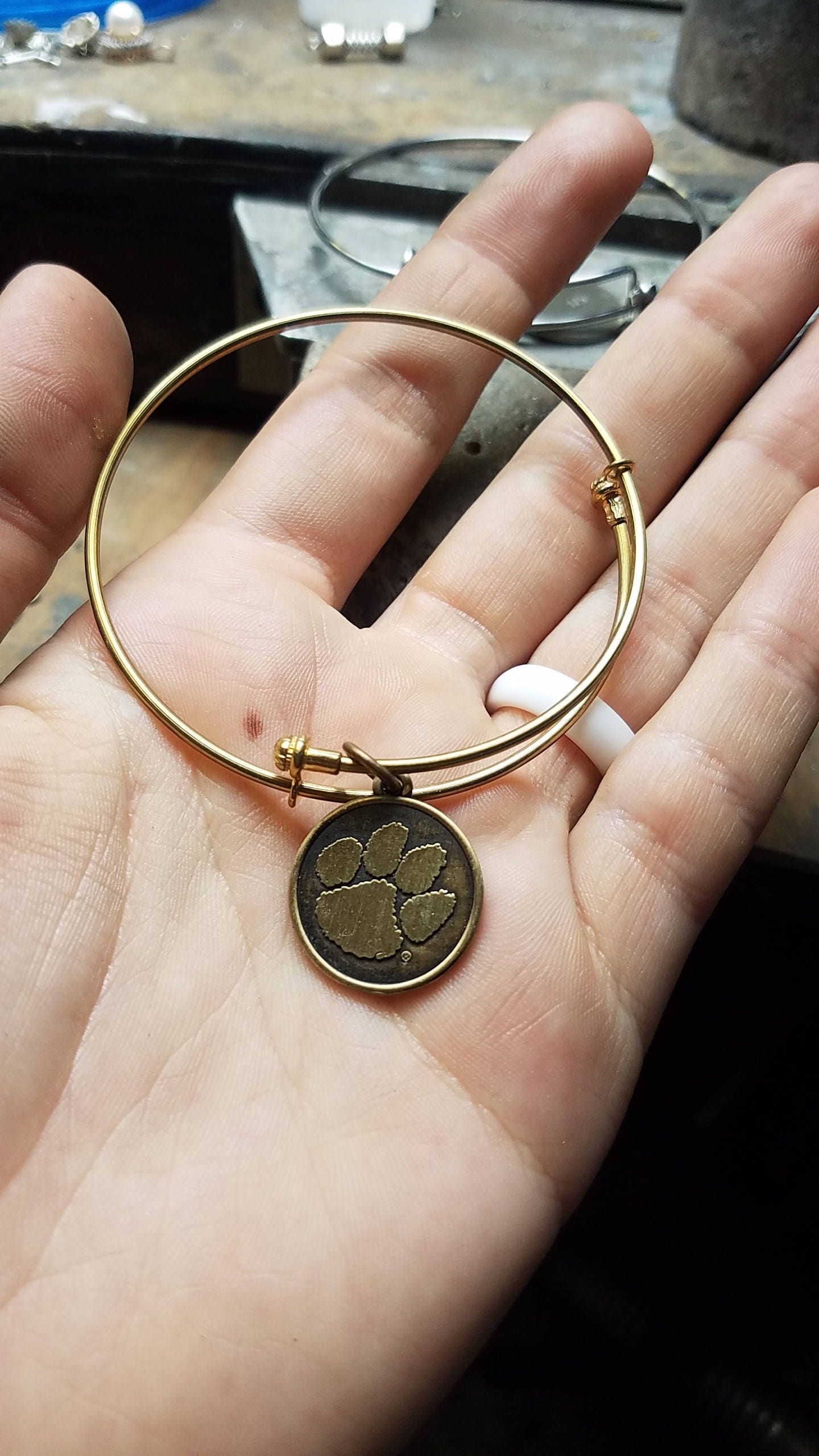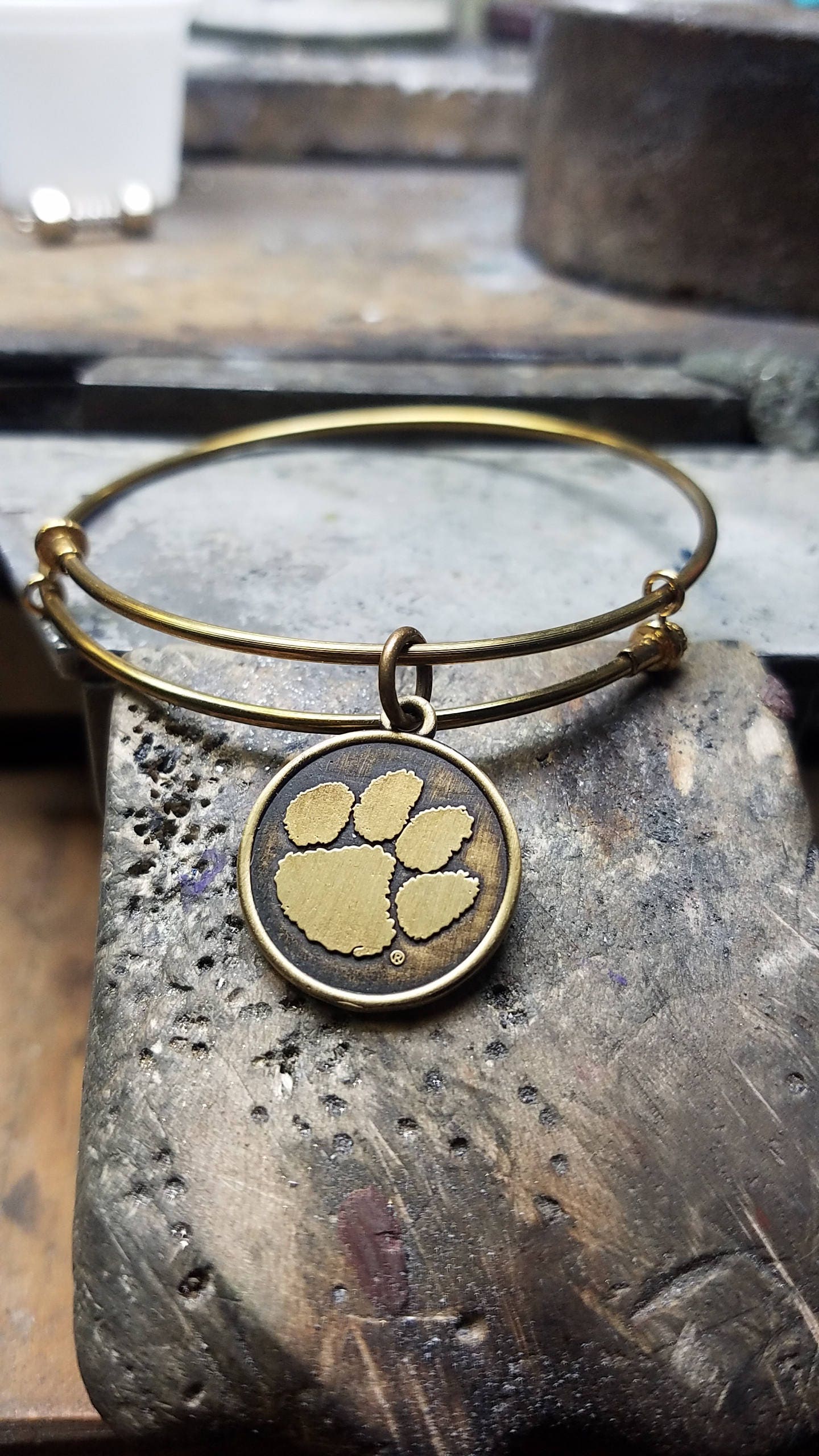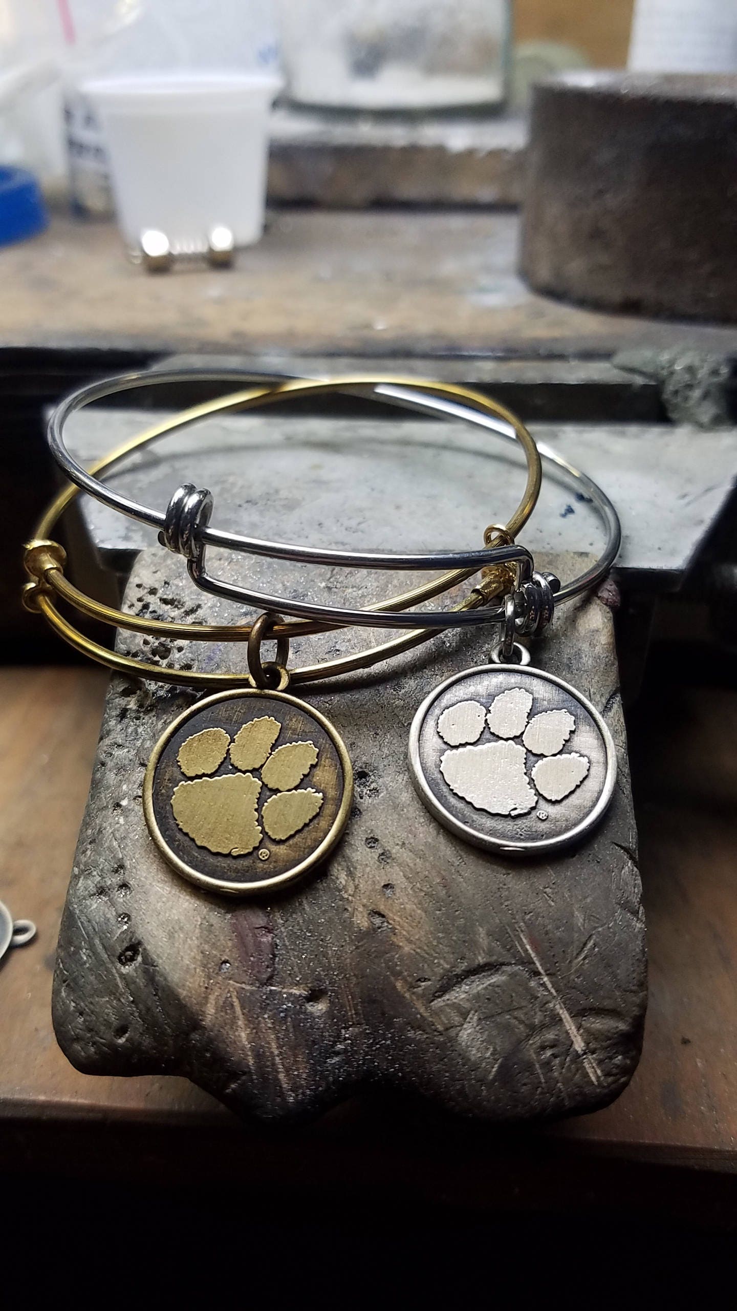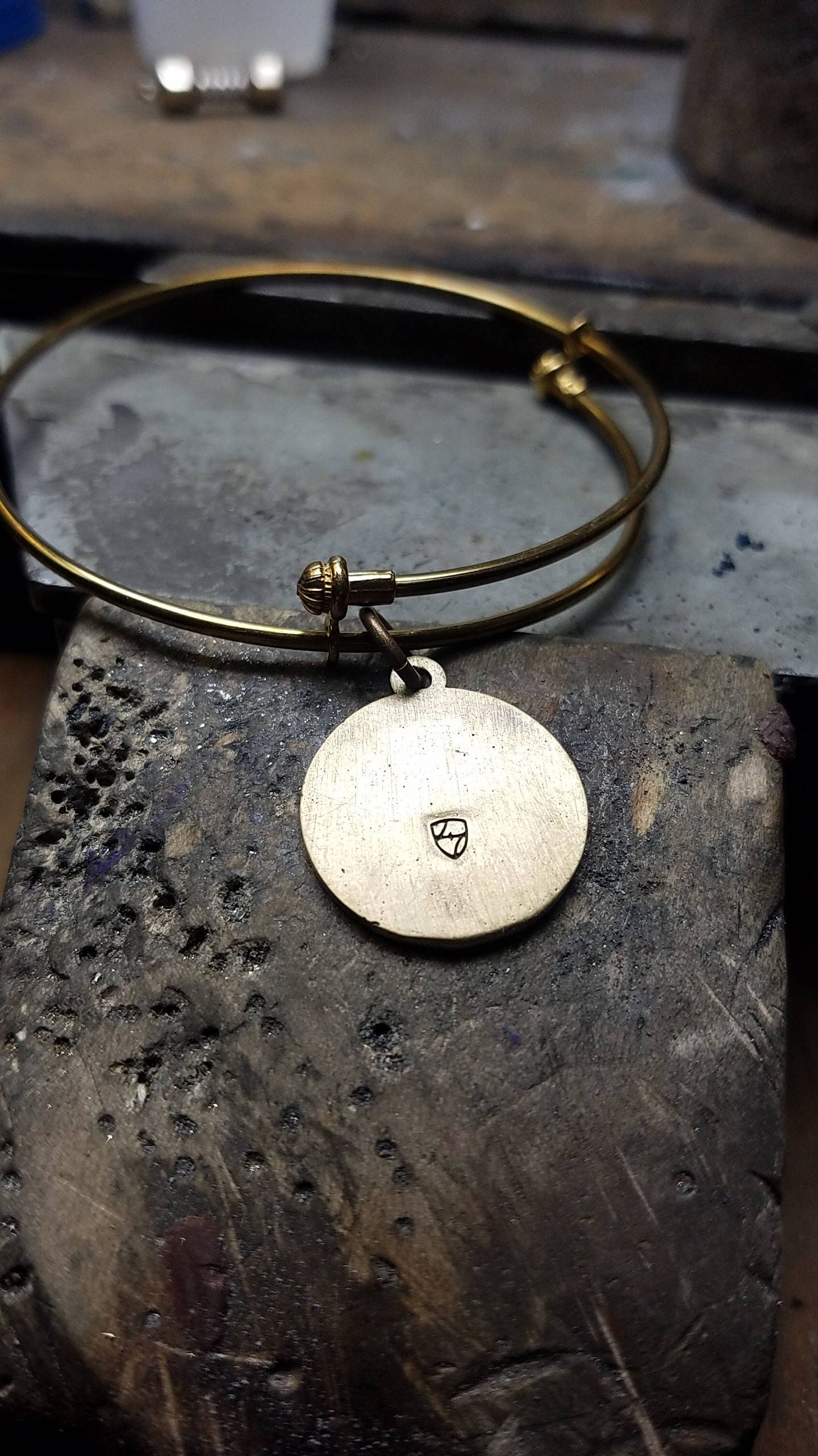 This bracelet is perfect for any stack! Or wear it by itself! The bracelet has enough flex to fit over most wrists. The charm is made cast from white bronze and the bracelet is made from durable stainless steel!