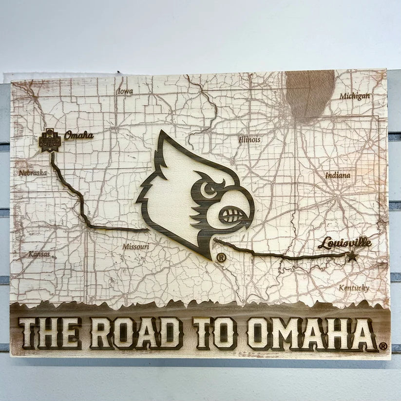 Custom lasered wall art. Designed, and made all right here in Omaha. Timeless piece to commemorate your teams trip to Omaha!