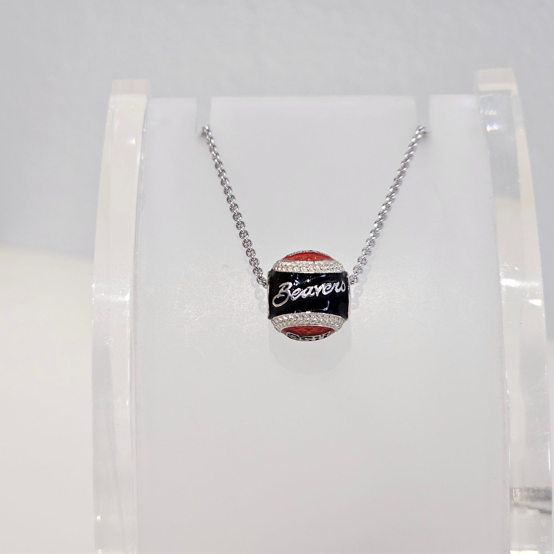 Thie Oregon State MCWS baseball pendant is cast and finished in house in sterling silver.
